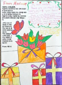 "Dear Teachers, thank you from the bottom of my heart for everything you have taught us. Thanks to your dedication, I have grown so much in my learning. Because of your care, I have learned a great deal about Korean language and culture. And our teachers are always..."